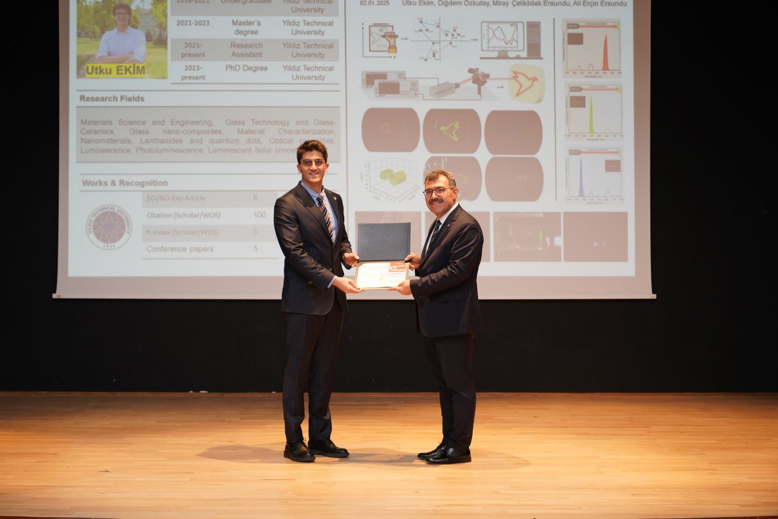Amerikan Seramik Derneği (ACerS) Türkiye Şubesi, Orta Doğu Teknik Üniversitesi (ODTÜ) ve Eskişehir Teknik Üniversitesi tarafından 27 Kasım 2025 tarihinde Ankara’da düzenlenen Prof. Dr. Muharrem Timuçin Konferans Serisi ve İleri Teknoloji Seramikleri Alanında Genç Araştırmacı Makale Ödülleri etkinliğinde, Bölümümüz Araştırma Görevlisi Utku EKİM, birincilik ödülü almaya hak kazanmıştır.